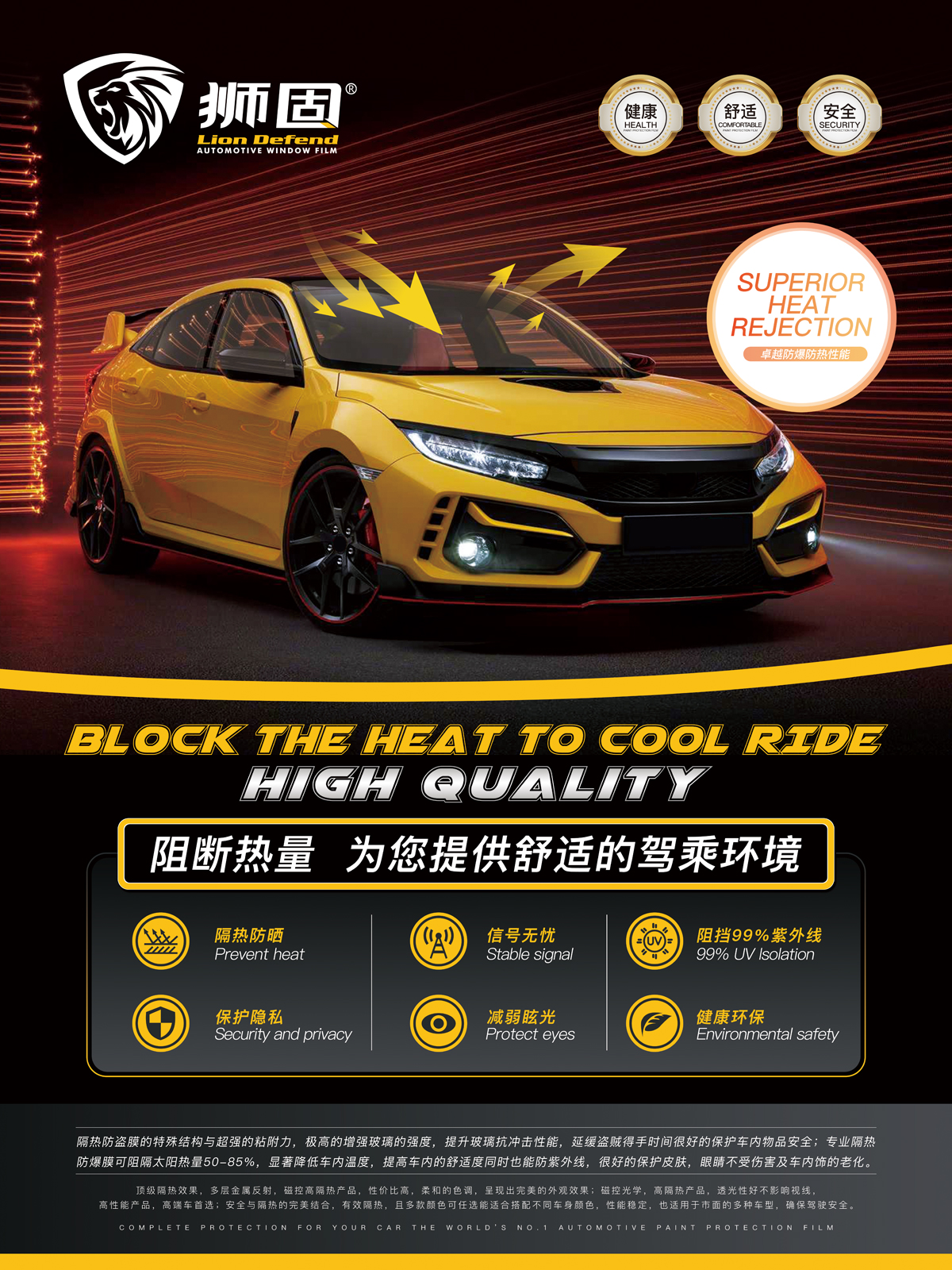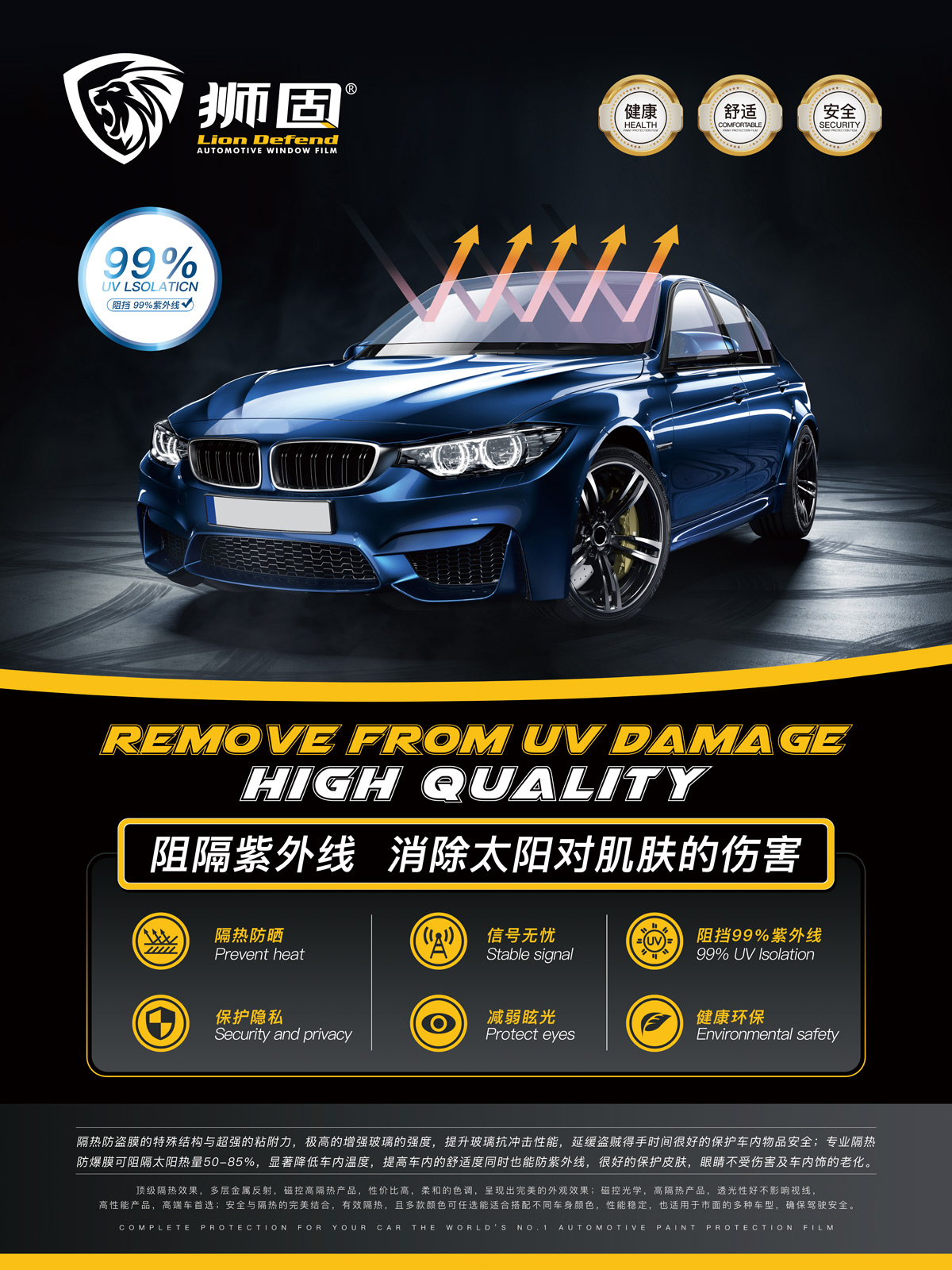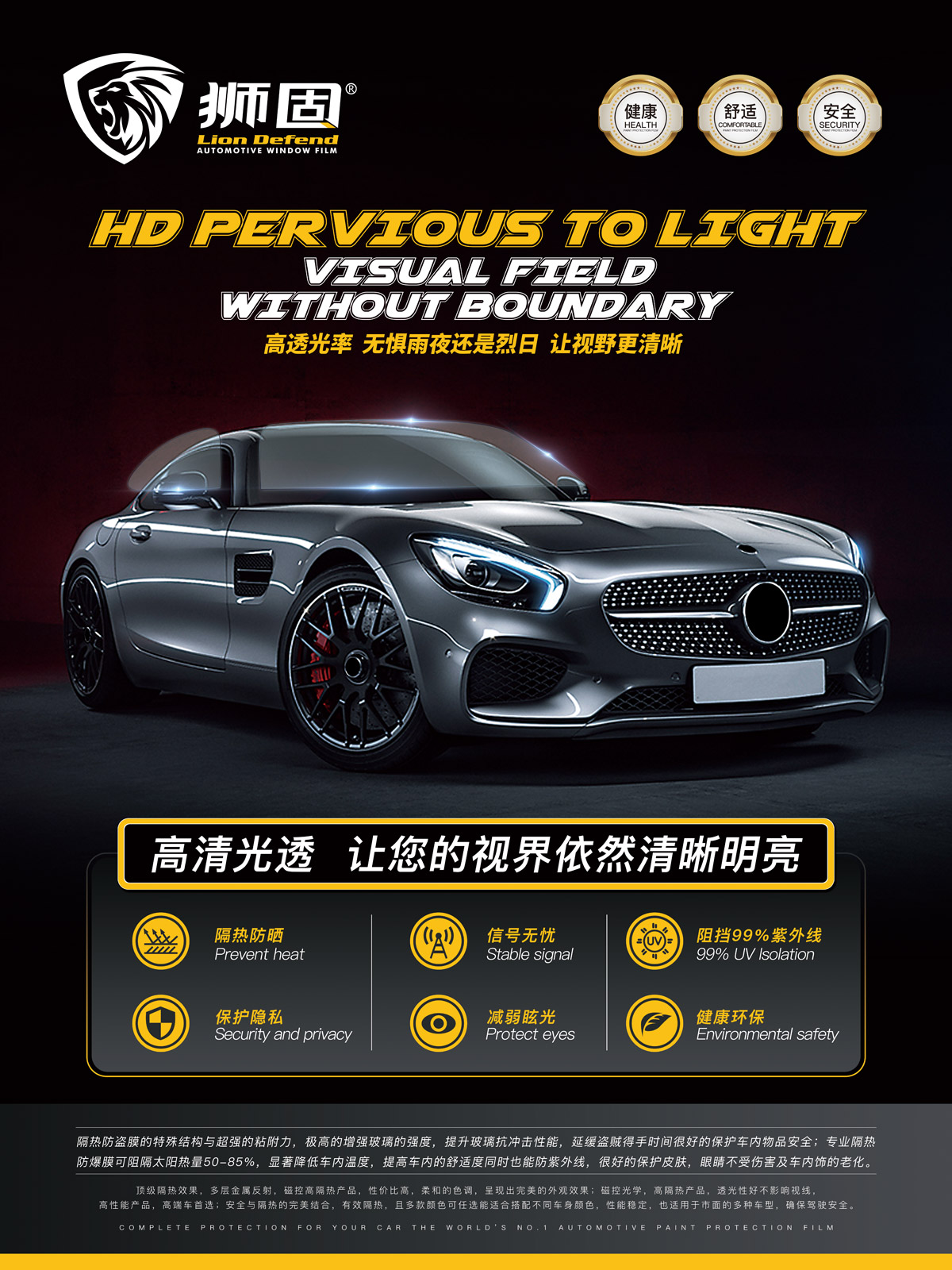 我们采用了现代技术磁控溅射和纳米光学工艺,替代了传统窗膜。我们利用专有技术、工艺、涂料,生产出高质量高性能的窗膜,达到较高的光学精密水平。这使本品汽车膜具有高清晰度,无失真,并且能有效降低能源成本,提高隐私,保证安全,减少热量和眩光,以及减少红外线穿透。